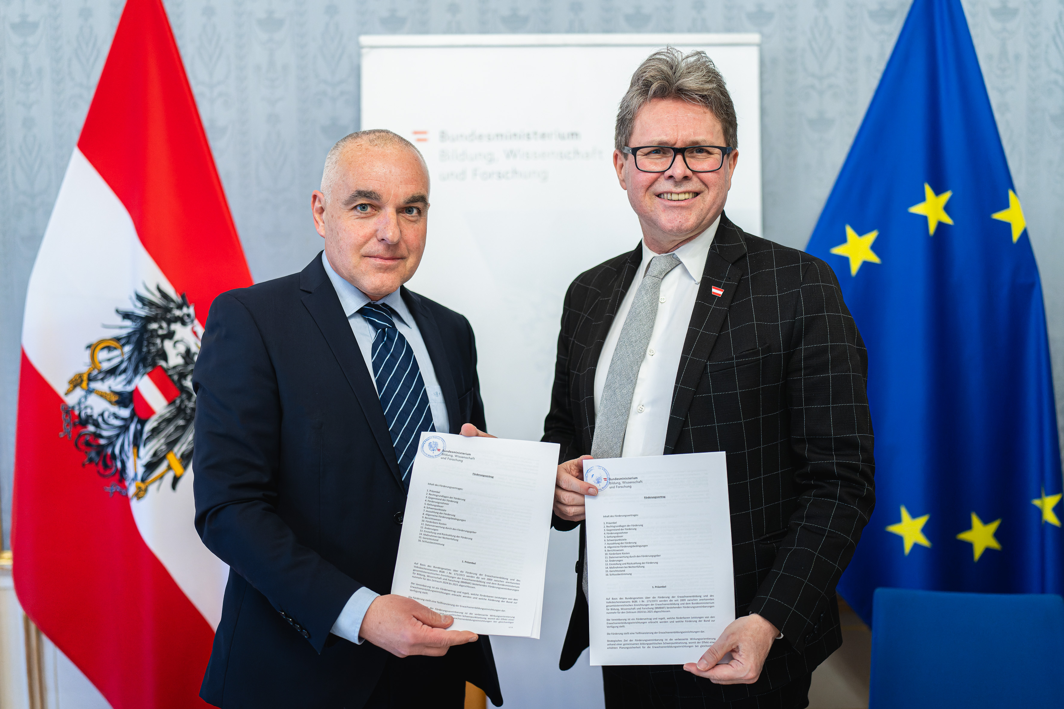 Am 6. März 2024 unterzeichneten Martin Polaschek, Bundesminister für Bildung, Wissenschaft und Forschung und die Verbände der Konferenz der Erwachsenenbildung Österreichs (KEBÖ) die Fördervereinbarungen - mit einer Erhöhung auf rund 6,8 Mio. Euro - für die Jahre 2024 und 2025.